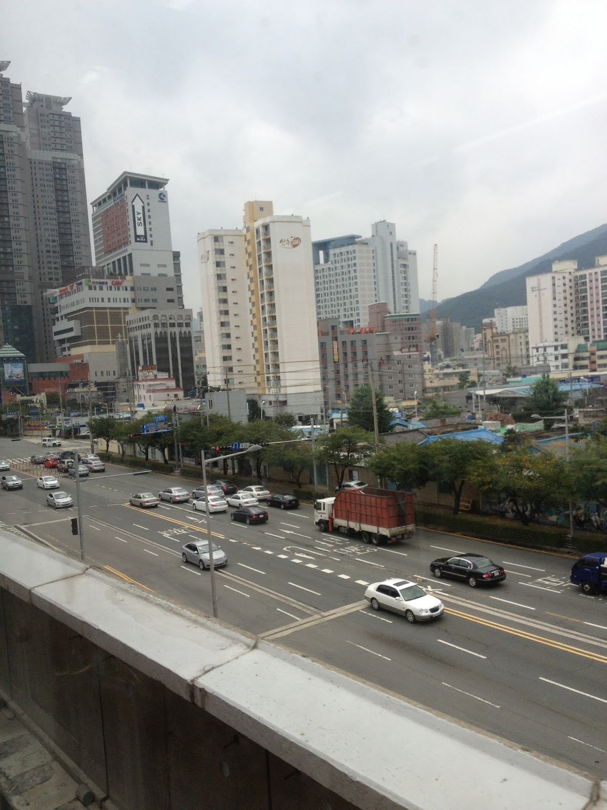 A picture out of the window of the subway on the way to Busan Station.