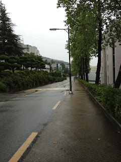 After two of my friends got out of class at 6:00 pm, the three of us went to Sogang University to run on their track and kick a soccer ball around. Sogang is about a 20 minute walk from our dorm. The campus is quite nice! It reminded me a lot of the Busan National University campus that I visited over the weekend.
