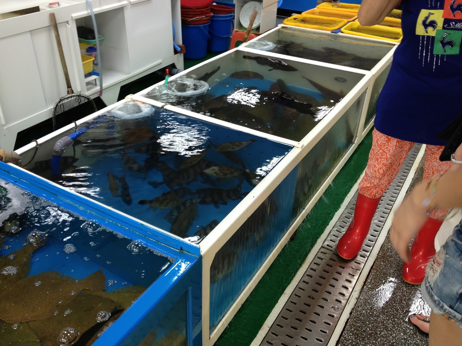 Choosing our fish and taking it up the elevator in the bucket