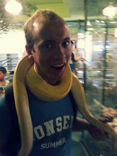 At the petting zoo! The picture on the right accurately portrays my emotions while handling that snake.