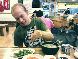 After that I went to my room and just relaxed for a while before meeting up with 5 other friends for dinner. It seems I spend the majority of my time in Korea eating food! The food here is extremely cheap and I don't have a kitchen so I essentially have to eat out every meal. You can frequently find full meals in a restaurant for $3-$4. The breakfast that I eat every morning, called onigiri (a Japanese rice-based food), only costs me about 70 cents.