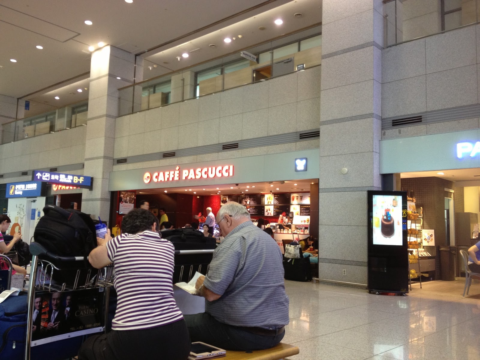 After I retrieved my suitcase from baggage claim, I started making my way toward the designated meeting point where I was supposed to meet the other study abroad students, Caffé Pascucci. The girl I met in Dallas (named Diana) and I actually arrived before the people organizing the study abroad group did, so we just hung out for about 30 minutes until they showed up. We have roughly one and a half more hours to wait for more students until we leave the airport and head into Seoul.