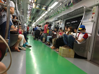 After lunch, we took an hour long subway ride to the Gangnam (강남) district and saw a bunch of street cafes and a giant underground bookstore called 교보문고, which means Kyobo Book Center.