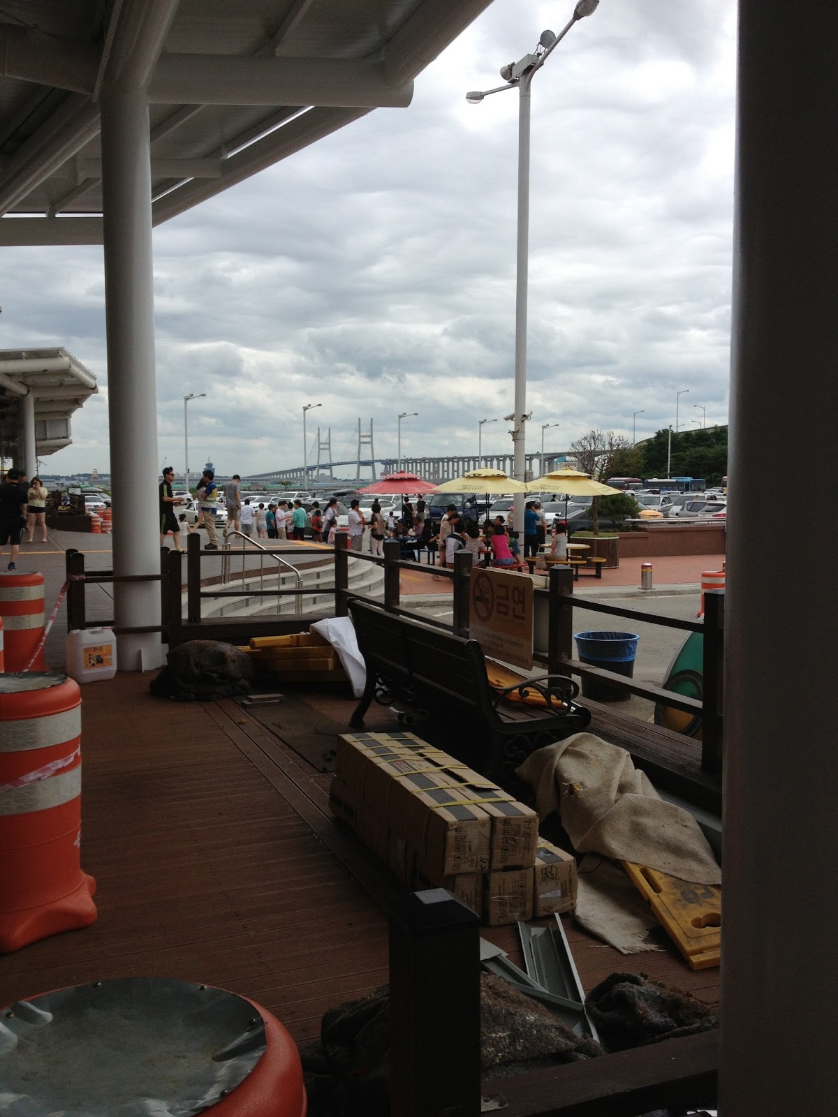 In the process of setting up our really confusing tent with the aid of a nice Korean man from a neighboring tent.