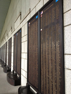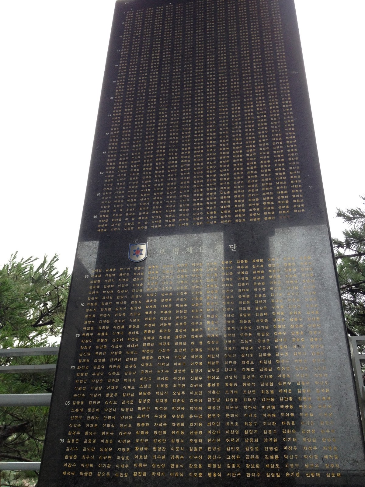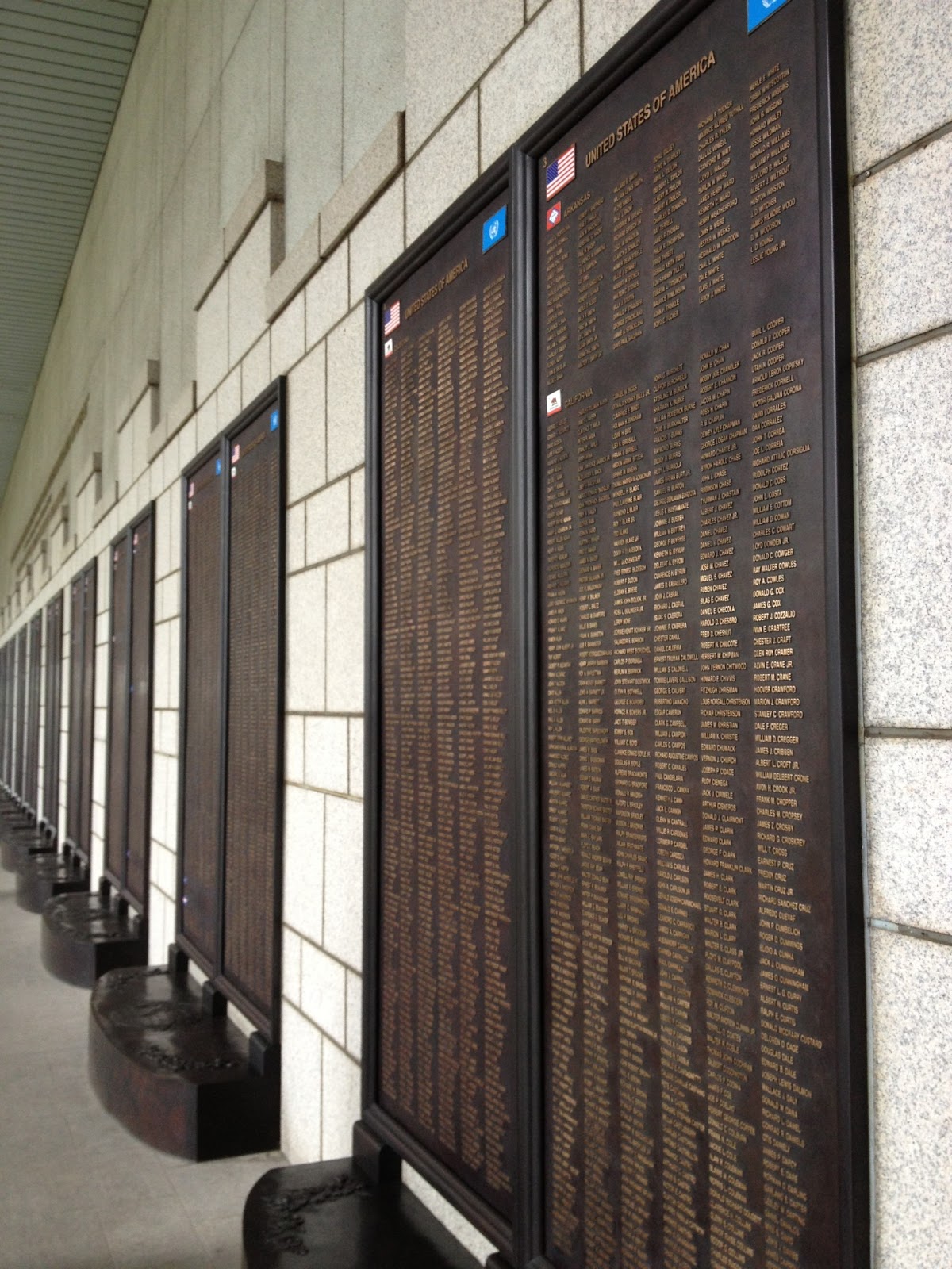 Next we went and saw the stone monuments containing the names of all the Koreans who died in armed conflicts from 1945-1953, which is very similar to the Vietnam Veterans Memorial in Washington, D.C. There are over 150,000 names listed on all of the stone blocks. The sheer number of names is daunting and saddening. What evoked the most emotional response from me, however, was when I stumbled upon the American and United Nations section. They have stone blocks with the name of every killed/MIA American soldier and all of the other members of the United Nations Command. I had no idea that this would be here and it was very sobering experience, all in all.