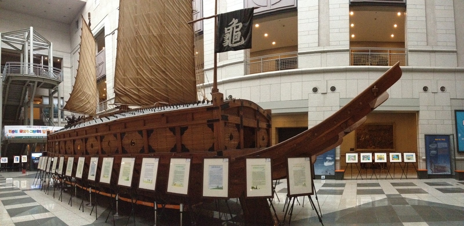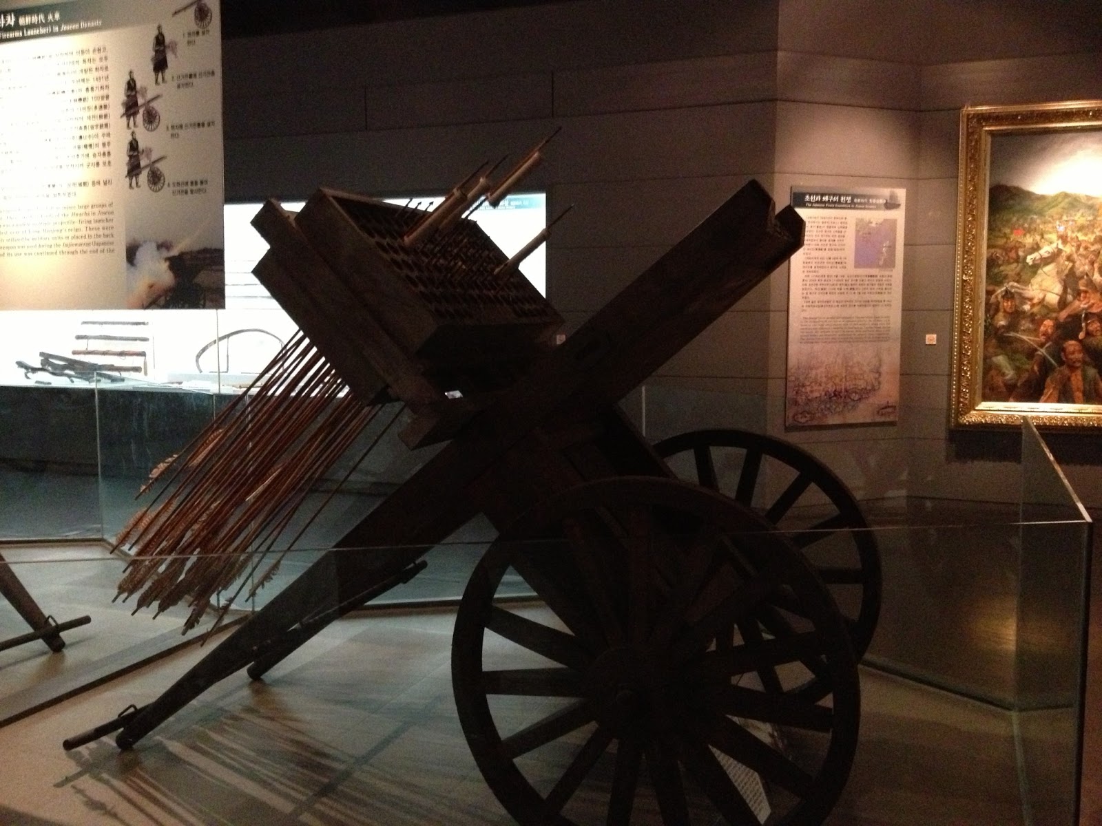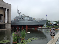 After seeing the Korean War section, we headed down to the bottom floor which had stuff on ancient wars, such as the Kuryŏ-Khitan wars (993-1019) and Chosŏn era (1392-1897) artifacts. This section was rather interesting because I knew a lot of the wars from my Premodern Korean History class. One of my favorite things on display here was at 1:2.5 scale model of the Turtle Ship which was designed by Admiral Yi, a famous Korean naval commander (there's a statue of Admiral Yi in Gwanghwamun Square).
