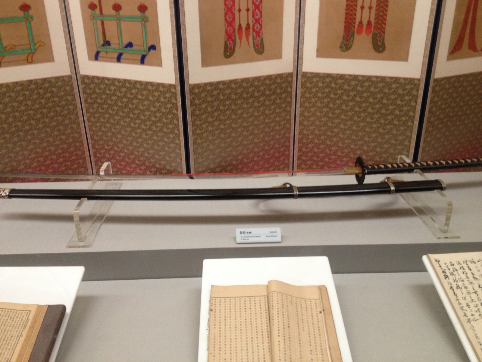 (Left) Chosŏn era war banner. (Right) Extremely long sword of Admiral Yi (it was about 5 feet long!!)